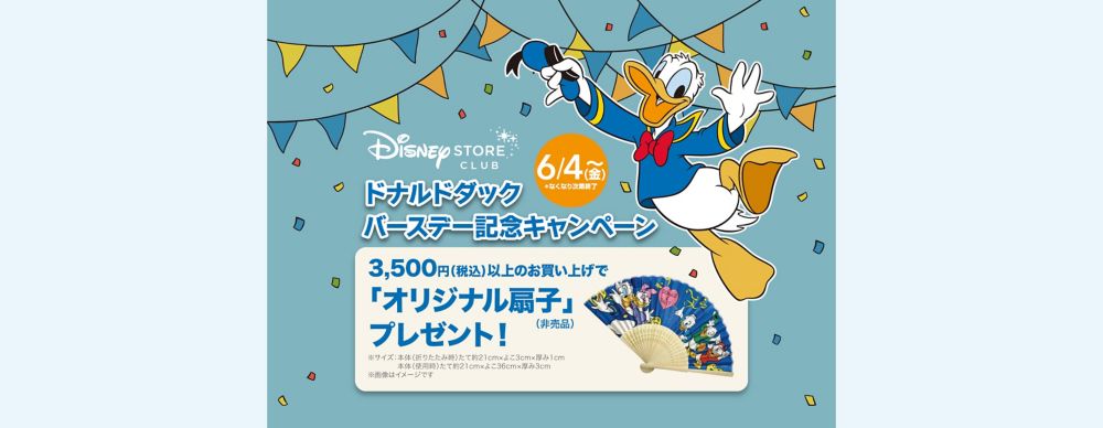 公式 ショップディズニー ドナルドダックバースデー記念キャンペーン開催 オリジナル扇子をプレゼント ディズニーストアクラブ